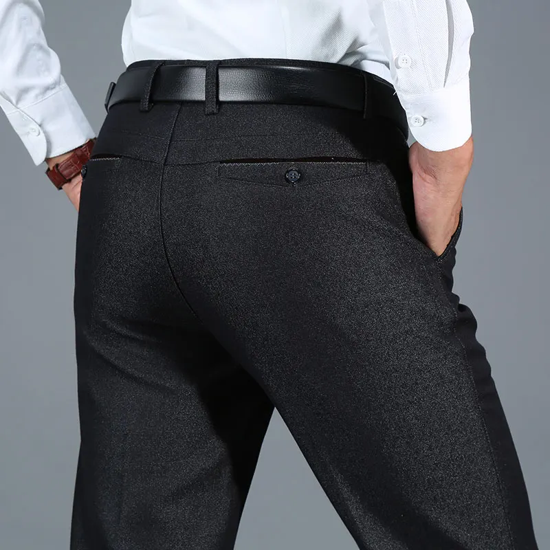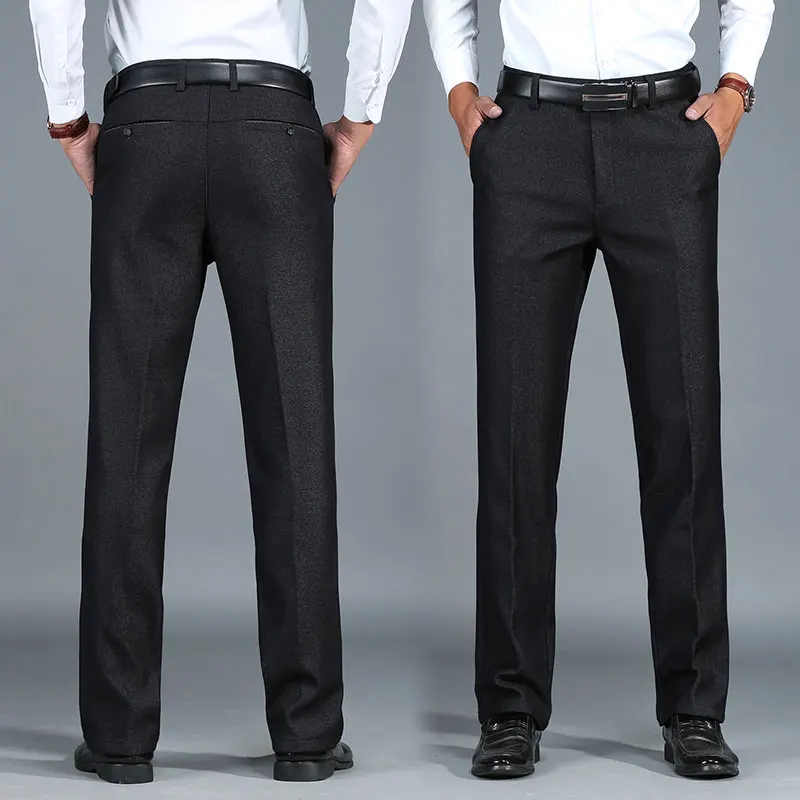 | ICPANS Mens Black Suit Pants Casual Fleece Warm Winter Pants Men Regular Wrinkle Elasticity Thick Trousers Male Big Size 42 |