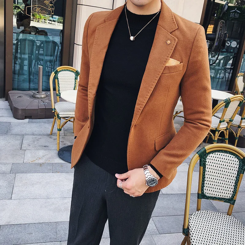 White Solid Color Men Business Blazer Jacket Casual Slim Fit Two Button Men Dress Suit Bleiser Hombre Mens Suit Jacket Masculino