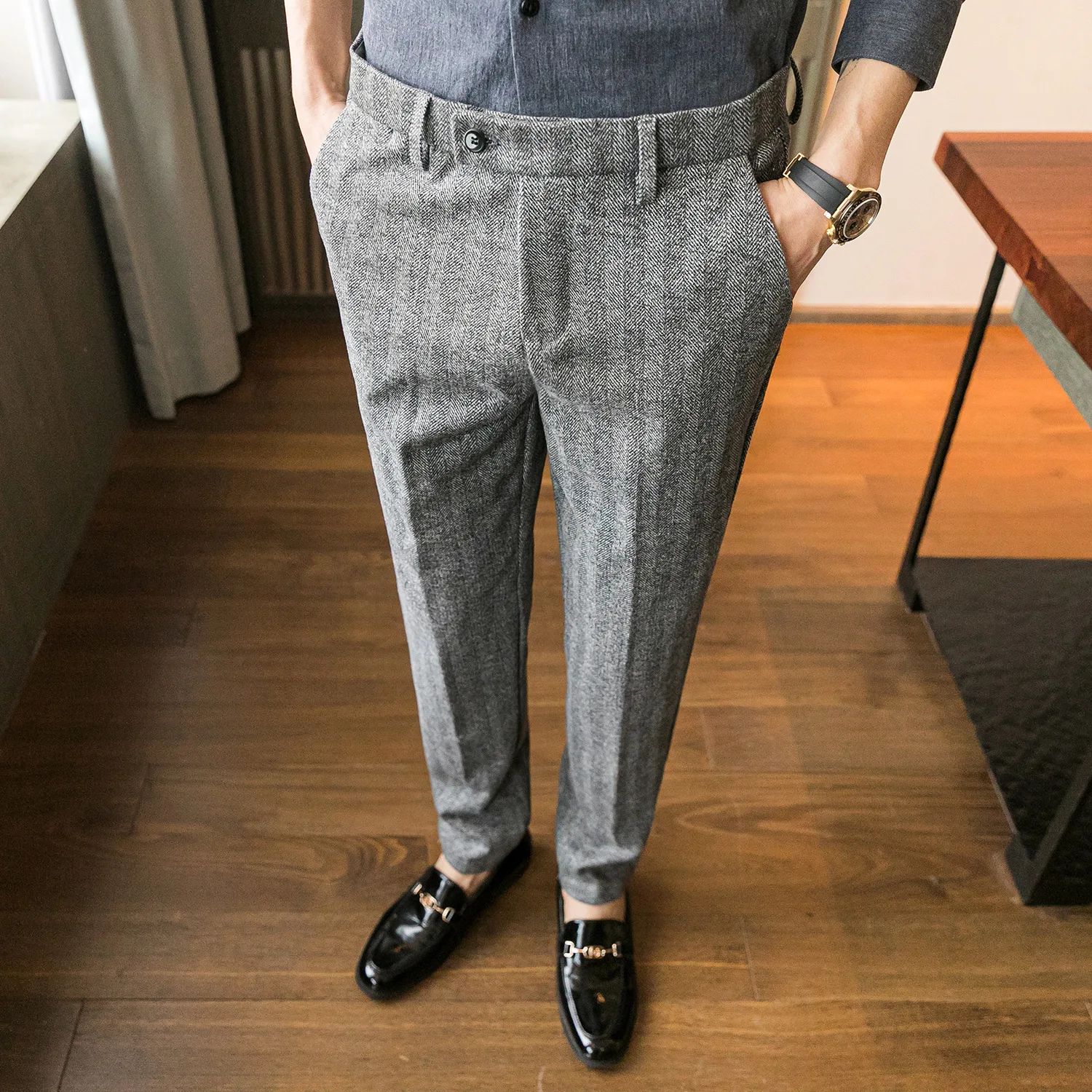 | ICPANS Woolen Dress Trousers Men Thicken Business Formal Office Trousers Wool Mens Suit Pant 2020 New |